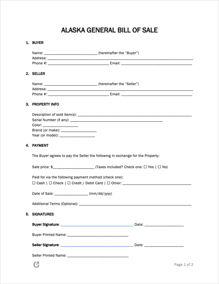 What is an Alaska General Bill of Sale?