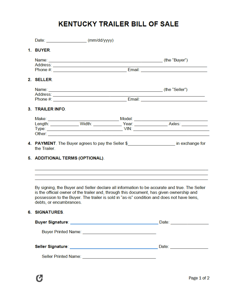 What is a Kentucky Trailer Bill of Sale?