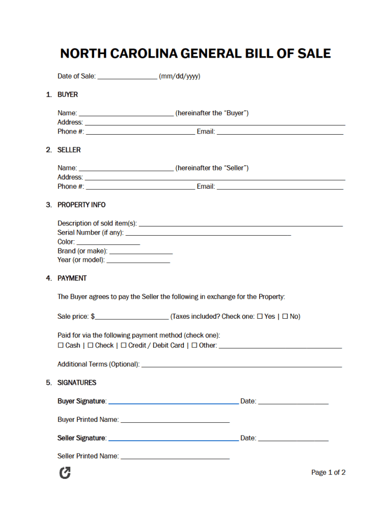 What is a North Carolina General Bill of Sale?
