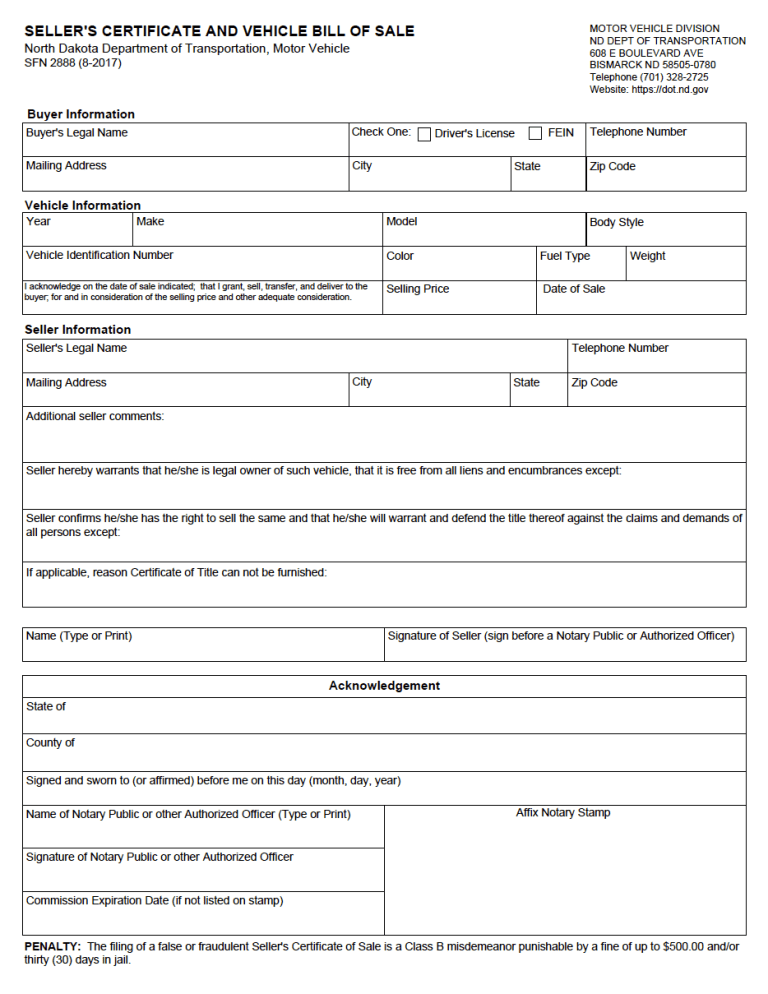What is a North Dakota Car Bill of Sale?