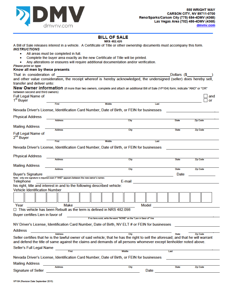 What is a Nevada Bill of Sale?