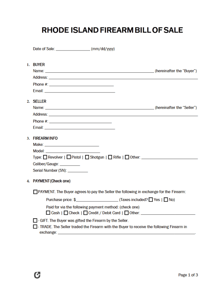 What is a Rhode Island Gun Bill of Sale?