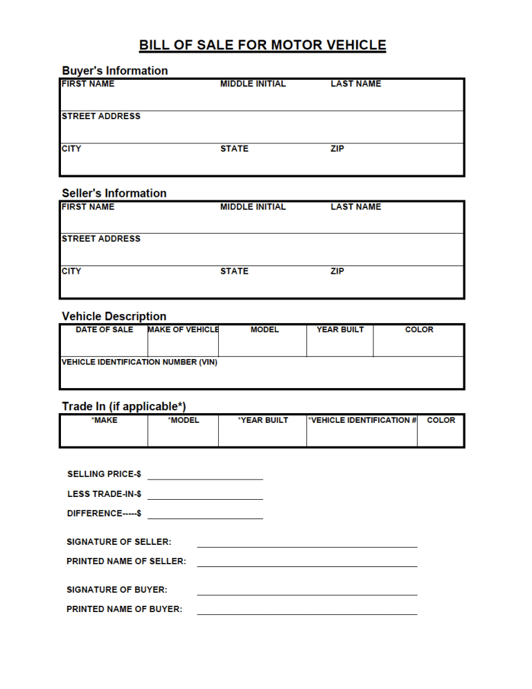 Boat Bill of Sale – Used when gaining possession of a boat or other watercraft from a private seller.