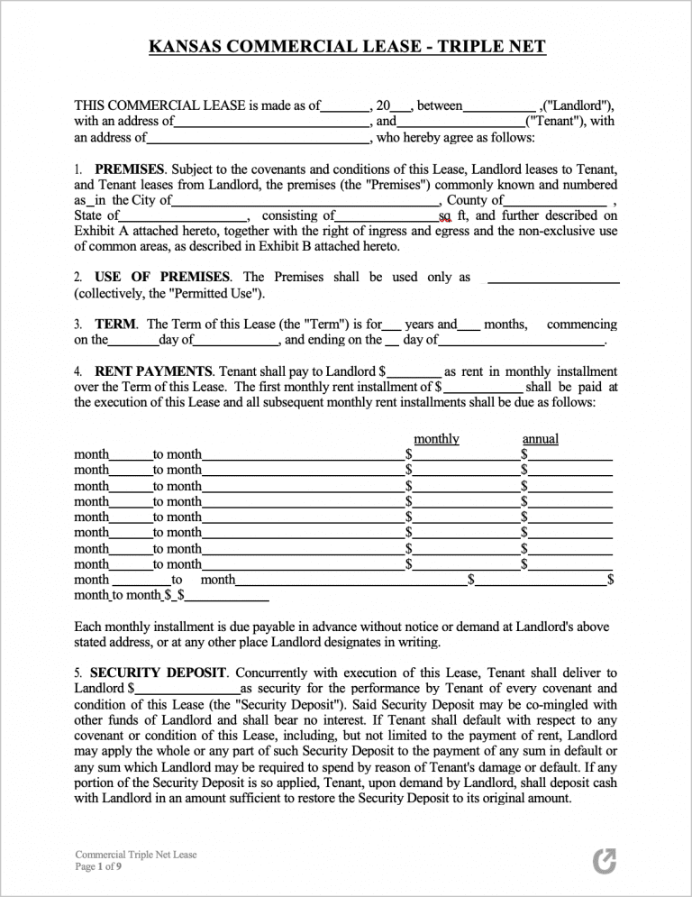 Kansas Commercial Lease Agreement (NNN)