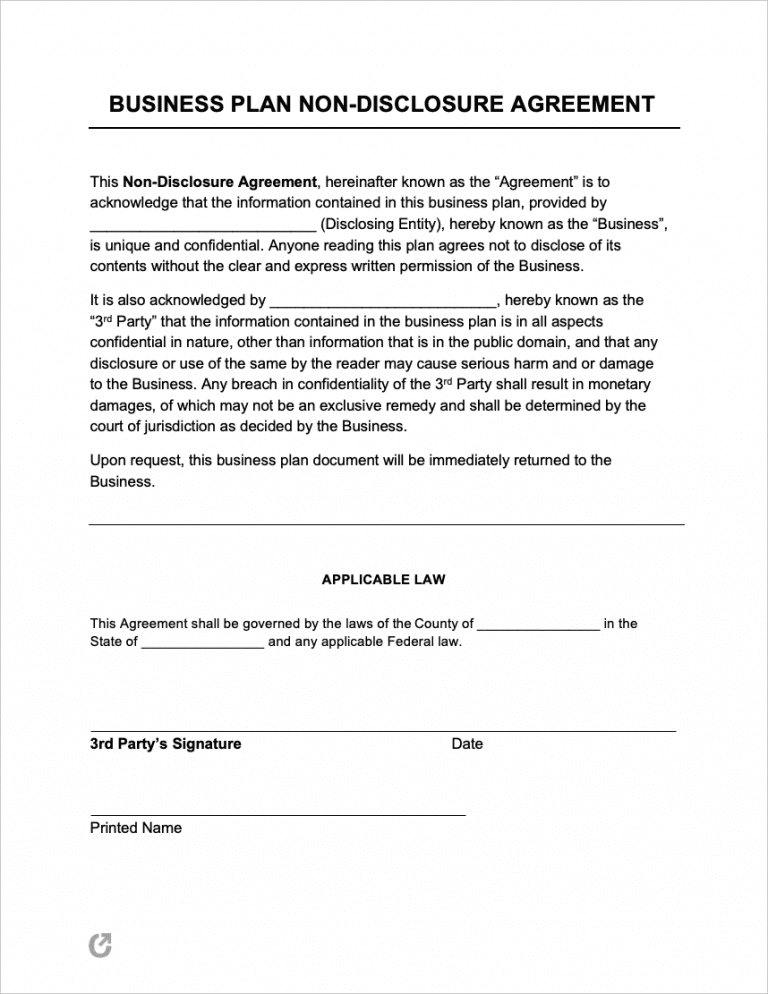 On the first line of the document, write the name of the company (or individual) sharing the business plan. If a company, the full legal name of the entity should be listed. On the next line, enter the name of the entity receiving permission to view the business plan. As before, this can be a person or a business.