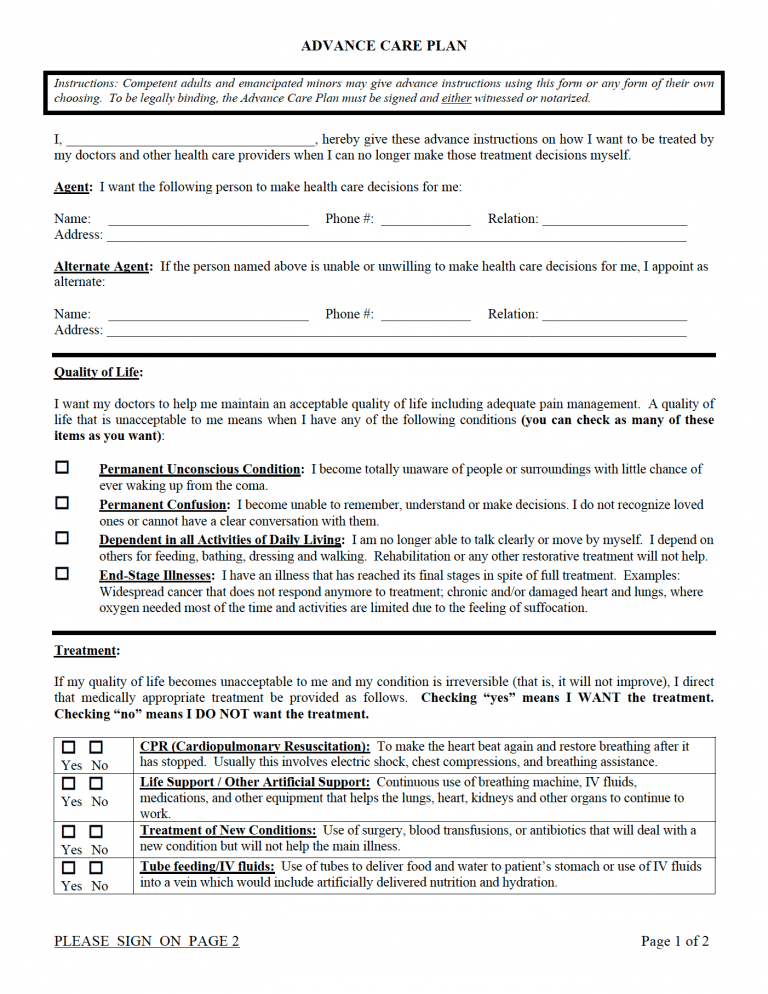 The principal must complete and sign it before they become mentally incapacitated. If the original agent is incapable of carrying out their duties, the first or second alternate agent (chosen by the principal) becomes responsible for making the decisions. While the agent can make choices about life-sustaining treatment, they cannot choose a principal’s mental health services, including decisions regarding psychosurgery, abortion, or electroconvulsive therapy.