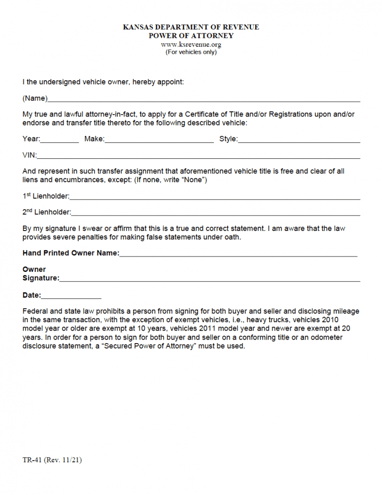 If the vehicle has an active lien, the owner must include the name of one (or both) lienholders. Once the car sells, the owner (or assigned attorney-in-fact) must repay the lienholder in full. The attorney-in-fact cannot act as both the buyer and seller when disclosing mileage. Instead, the owner needs to complete a secured power of attorney. This step does not apply to exempt vehicles, such as heavy trucks or cars over ten (10) years old. Filling out a secured power of attorney ensures that the buyer or seller accurately records the odometer reading.